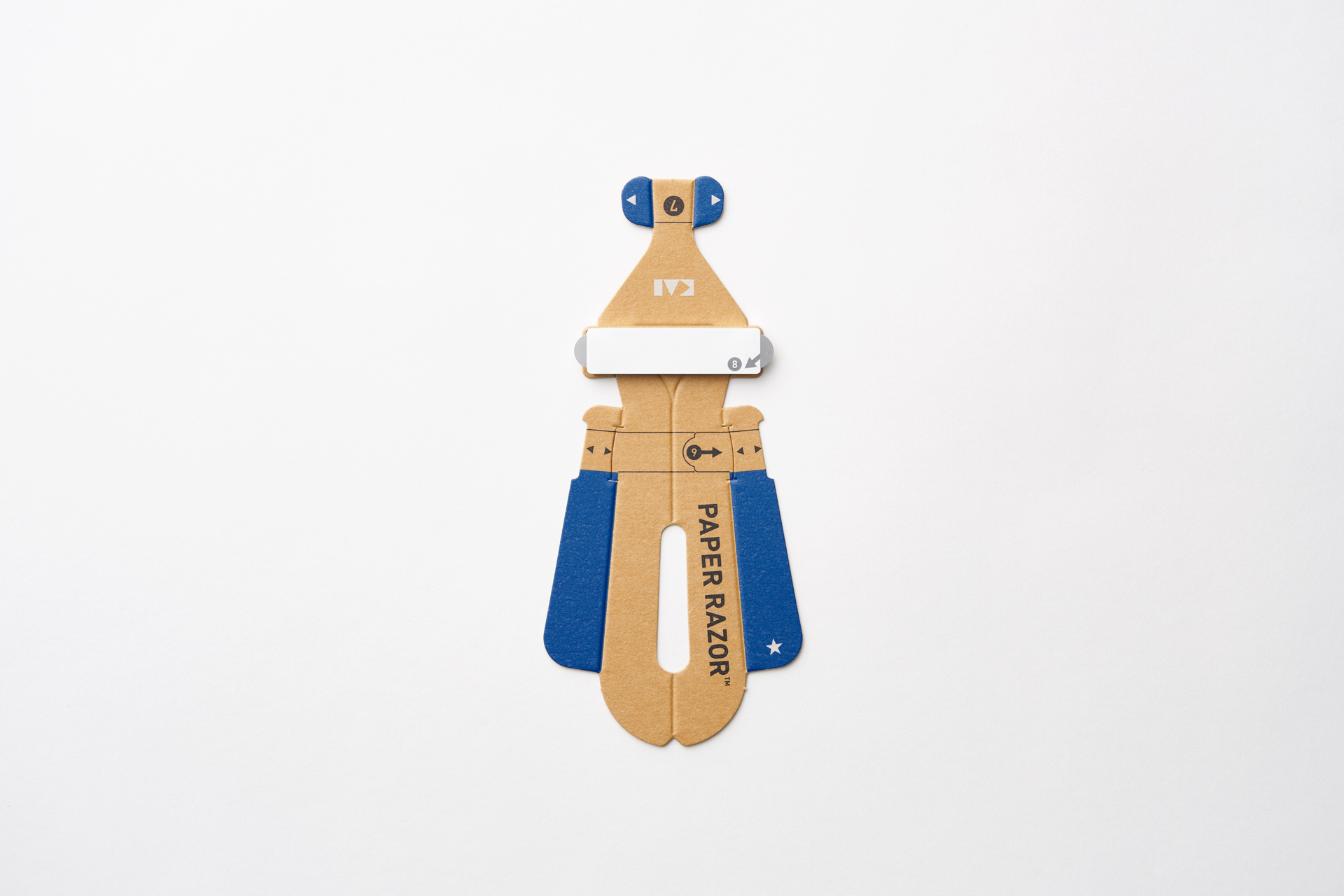 贝印纸剃刀的结构设计是从结实的纸勺和牛奶盒中获得的灵感,并不是单纯地将刀架的材质由塑料换成纸,而是在保证刀架的握持手感和刀片锋利度不逊色于塑料剃刀的基础上进行了精心设计。和贝印过去的塑料剃刀产品相比,纸剃刀的塑料使用减少了98%,从生活细节处入手保护环境。由于选取的纸具有良好的耐水性,因此即使纸剃刀被冷水或热水(约40℃)淋湿也可正常使用。这项创新的设计还获得了DIA中国设计智造大奖的铜奖。
